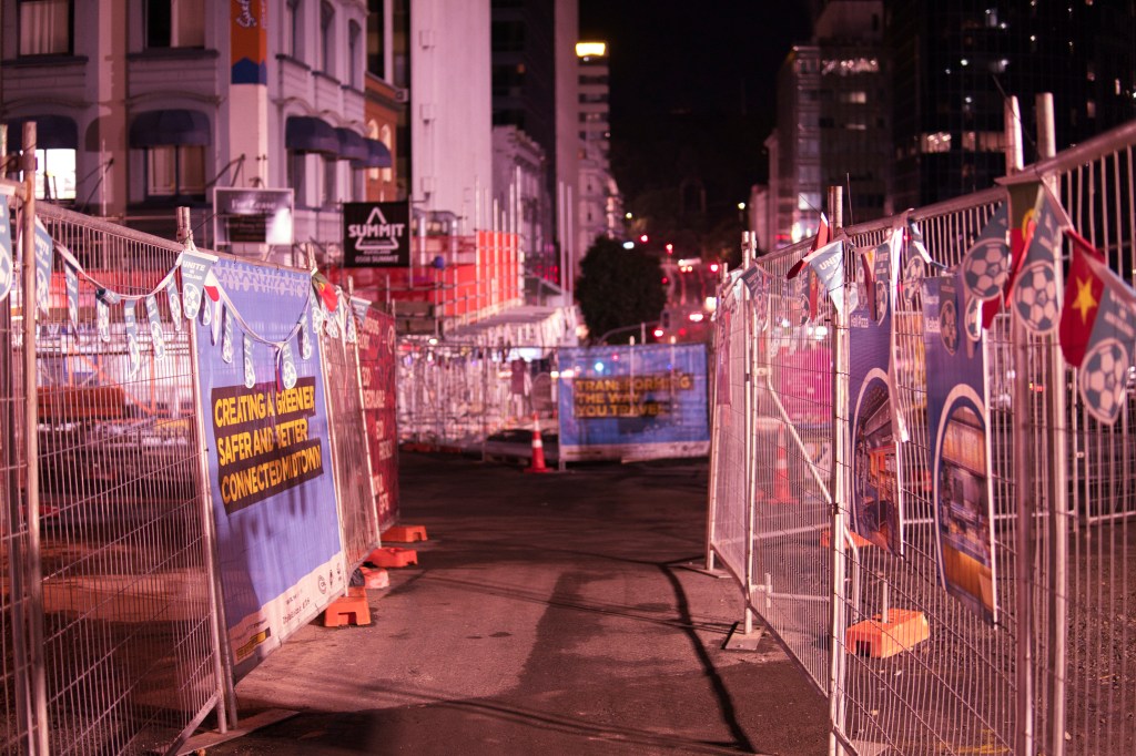 Late night stroll around central Auckland. Noticeable that the city is a combination of old historical buildings, new builds, hosting the FIFA Women’s World Cup, and a bit of a construction dump with the City Rail Loop.